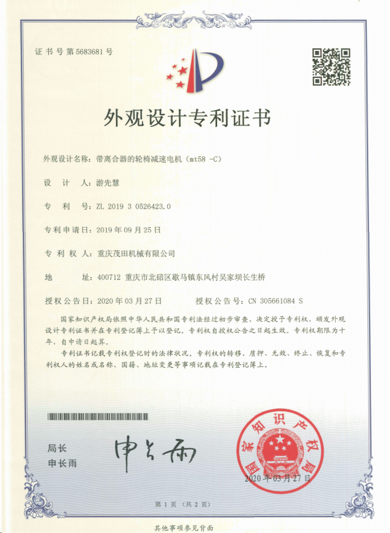 重慶茂田機(jī)械有限公司是國家級小巨人企業(yè)、國家高新技術(shù)企業(yè)、重慶市專精特新企業(yè)、重慶市知識產(chǎn)權(quán)優(yōu)勢企業(yè),致力于現(xiàn)代化山地農(nóng)業(yè)機(jī)械、各類非標(biāo)減速電機(jī)及其控制系統(tǒng)的研發(fā)、生產(chǎn)、銷售。擁有重慶市市級研發(fā)平臺1個(gè) 目前研發(fā)、生產(chǎn)、銷售產(chǎn)品廣泛應(yīng)用于農(nóng)業(yè)機(jī)械、醫(yī)療康復(fù)設(shè)備、交通代步工具、智能搬運(yùn)設(shè)備、以及機(jī)器人動(dòng)力系統(tǒng)等領(lǐng)域。我們的產(chǎn)品具有完整的自主知識產(chǎn)權(quán),擁有多項(xiàng)專利技術(shù)及“重慶